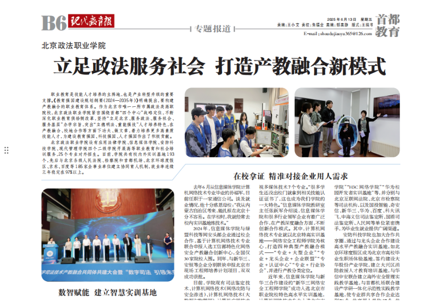 【现代教育报】sunbet申搏官方网站:立足政法服务社会 打造产教融合新模式